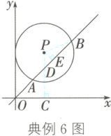 典例 6 如图,在平面直角坐标系中,$\odot P$的圆心坐标是$(3,a)(a > 3)$,半径为$3$,函数$y = x$的图象被$\odot P$截得的弦$AB$的长为$4\sqrt{2}$,则$a$的值为
