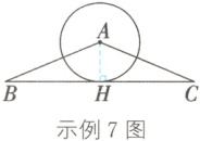 示例7 如图,在$\triangle ABC$中,$AB = AC = 13\mathrm{cm}$,$BC = 24\mathrm{cm}$,以$\triangle ABC$的顶点$A$为圆心,$5\mathrm{cm}$长为半径画$\odot A$.求证:$\odot A$与$BC$相切.