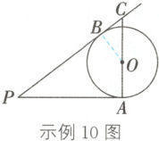 示例10(2023·广西改编)如图,$PA$,$PB$切$\odot O$于点$A$,$B$,连接$AO$并延长,交$PB$的延长线于点$C$.已知$\odot O$的半径为$4$,$OC = 5$,求$AP$的长.