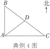 典例 4 如图,在 $A$ 地向北 $90m$ 的 $B$ 处有一栋民房,向东 $120m$ 的 $C$ 处有一变电设施,在 $BC$ 的中点 $D$ 处有一古建筑。因施工需要,必须在 $A$ 处进行爆破,为了使民房、变电设施、古建筑都不受到破坏,爆破的半径应该控制在什么范围内?