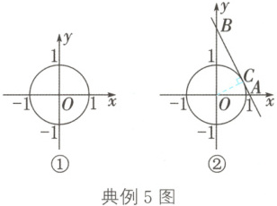 典例 5 如图①,在平面直角坐标系中,$\odot O$ 的半径为 $1$,则直线 $y = -2x + \sqrt{5}$ 与 $\odot O$ 的位置关系是()