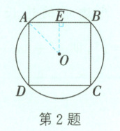 解析:如图,连接 $AC$,$OE$,$OF$,过点 $O$ 作 $OM\perp EF$ 于点 $M$,则 $EM = FM$。因为四边形 $ABCD$ 是正方形,所以 $AB = BC = 4$,$\angle ABC = 90^{\circ}$。所以 $AC$ 是 $\odot O$ 的直径,$AC = 4\sqrt{2}$。所以 $OE = OF = 2\sqrt{2}$。由 $\triangle EFG$ 是 $\odot O$ 的内接正三角形,知点 $O$ 是 $\triangle EFG$ 的中心,所以 $\angle OEM = \frac{60^{\circ}}{2} = 30^{\circ}$。所以 $OM = \frac{1}{2}OE = \sqrt{2}$。所以 $EM = \sqrt{(2\sqrt{2})^{2} - (\sqrt{2})^{2}} = \sqrt{6}$。所以 $EF = 2EM = 2\sqrt{6}$。