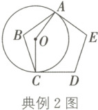 典例2(贵阳中考)如图,$\odot O$ 与正五边形 $ABCDE$ 的两边 $AE$,$CD$ 相切于 $A$,$C$ 两点,则 $\angle AOC$ 的度数是()