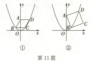 ③如图②,正方形$ABCD$的顶点$B$,$D$在该二次函数的图象上,点$B$,$D$在$y$轴的同侧,且点$B$在点$D$的左侧.设点$B$,$D$的横坐标分别为$m$,$n$,试探究$n - m$是否为定值.如果是,求出这个值;如果不是,请说明理由.