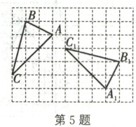 5. 如图,在正方形网格中,格点三角形 $ ABC $ 绕某点按顺时针方向旋转 $ \alpha (0^{\circ} \lt \alpha \lt 180^{\circ}) $ 得到格点三角形 $ A_1B_1C_1 $,$ A $ 与 $ A_1 $,$ B $ 与 $ B_1 $,$ C $ 与 $ C_1 $ 是对应点,则 $ \alpha = $