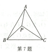 7. 如图,等边三角形 $ ABC $ 内有一点 $ P $,分别连接 $ AP $,$ BP $,$ CP $。若 $ AP = 6 $,$ BP = 8 $,$ CP = 10 $,则 $ S_{\triangle ABP} + S_{\triangle BPC} = $