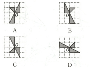 2. 如图,将方格纸中的图形绕点 $ O $ 按顺时针方向旋转 $ 90^{\circ} $,得到的图形是(