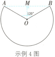 (3)如图,连接 $ AB $,过点 $ O $ 作 $ OM \perp AB $ 于点 $ M $。因为 $ \angle AOB = 120^{\circ} $,$ OA = OB $,所以 $ \angle BAO = 30^{\circ} $,$ AM = \frac{1}{2}AB = \sqrt{3} $。所以易得 $ OA = 2 $。所以该圆锥底面圆的半径为 $ \frac{240\pi × 2}{180} ÷ 2\pi = \frac{4}{3} $。