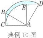 典例 10 如图,在 $ Rt\triangle ABC $ 中,$ \angle BCA = 90^{\circ} $,$ \angle BAC = 30^{\circ} $,$ BC = 2 $。将 $ \triangle ABC $ 绕点 $ A $ 按顺时针方向旋转 $ 90^{\circ} $ 得到 $ \triangle ADE $,则 $ BC $ 扫过的面积为 (