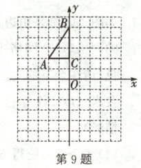 9. 如图,方格纸中的每个小正方形的边长都是1,$Rt\triangle ABC$三个顶点的坐标分别为$A(-2,2)$,$B(0,5)$,$C(0,2)$。