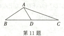 11. 如图,在$\triangle ABC$中,$AC = 5$,$AB = 3$,$BC$边上的中线$AD = 2$,则$\triangle ABC$的面积为