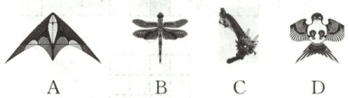 “勤学小组”的同学查阅了有关风筝的历史、种类、结构、制作等方面的资料,同时还收集到如下的风筝图案,请你帮助他们从中选出不是轴对称图形的风筝图案: