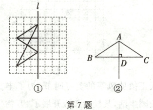 设计风筝时主要进行风筝面与风筝骨架的设计。“勤学小组”的同学设计好了风筝面,接下来在如图①所示的正方形网格中进行风筝骨架的设计,请你帮助他们以直线l为对称轴画出风筝骨架的另一半。