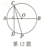 12. 如图,$AB$ 为 $\odot O$ 的一固定直径,它把 $\odot O$ 分成上、下两个半圆,过上半圆上一点 $C$ 作弦 $CD \perp AB$,$\angle OCD$ 的平分线交 $\odot O$ 于点 $P$,当点 $C$ 在上半圆(不包括 $A$,$B$ 两点)上移动时,点 $P$(