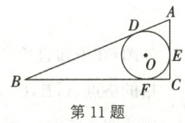 11. 如图,⊙O 为 Rt△ABC 的内切圆,切点分别为 D,E,F,且∠C = 90°,AB = 13,BC = 12。求:
