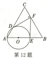 12. (玉林中考)如图,⊙O 与等边三角形 ABC 的边 AC,AB 分别交于点 D,E,AE 是直径,过点 D 作 DF⊥BC 于点 F。