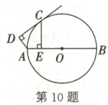 10. 如图,AB 是⊙O 的直径,点 C 在⊙O 上,AD 垂直于过点 C 的切线,垂足为 D,CE⊥AB,垂足为 E。求证:CD = CE。