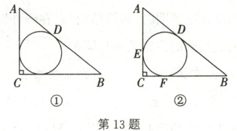 13. 有这样一个问题:如图①,Rt△ABC 的内切圆与斜边 AB 相切于点 D,AD = m,BD = n,求△ABC 的面积(用含 m,n 的式子表示)。