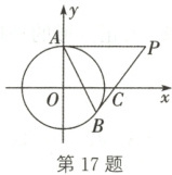 17. 如图,在平面直角坐标系中,以点 O 为圆心,2 为半径的圆与 y 轴的正半轴交于点 A,P(4,2)是⊙O 外一点,直线 PB 与⊙O 相切于点 B,交 x 轴于点 C,连接 AP,AB。