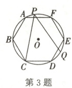 3. (2023·内江)如图,正六边形 ABCDEF 内接于$\odot O$,点 P 在$\widehat{AF}$上,Q 是$\widehat{DE}$的中点,则$\angle CPQ$的度数为(
