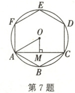 7. 如图,正六边形 ABCDEF 内接于$\odot O$,半径 OA 为 4,$OM\perp AC$,则 OM 的长为
