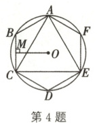 4. 如图,$\odot O$的内接正六边形 ABCDEF 的边心距$OM = 2$,则该圆的内接正三角形 ACE 的面积为(