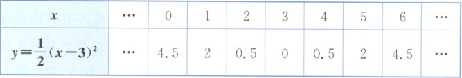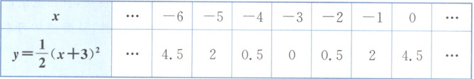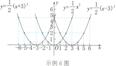 它们的开口都向上,函数 $ y = \frac{1}{2}x^2 $,$ y = \frac{1}{2}(x + 3)^2 $,$ y = \frac{1}{2}(x - 3)^2 $ 的图象的对称轴分别是 $ y $ 轴,直线 $ x = -3 $,直线 $ x = 3 $,顶点坐标分别是 $ (0,0) $,$ (-3,0) $,$ (3,0) $。