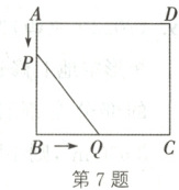 7. 如图,在矩形ABCD中,AB = 5cm,BC = 6cm,点P从点A开始沿边AB向终点B以1cm/s的速度运动,点Q从点B开始沿边BC向终点C以2cm/s的速度运动。点P,Q分别从点A,B同时出发,当点Q运动到点C时,两点停止运动。设运动时间为t(t > 0)s。