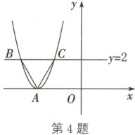 4. 如图,在平面直角坐标系中有一顶点为 $ A $ 的抛物线,此抛物线与直线 $ y = 2 $ 交于 $ B $,$ C $ 两点,$ \triangle ABC $ 为正三角形。若点 $ A $ 的坐标为 $ (-3,0) $,则此抛物线与 $ y $ 轴的交点坐标为(