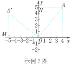 示例2 (2023·金华改编)在平面直角坐标系中,将点 $A(4,5)$ 绕原点 $O$ 按逆时针方向旋转 $90^{\circ}$,得到点 $A'$。