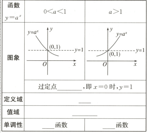 2.$y = a^{x}(a > 0$,且$a \neq 1)$ $\mathbf{R}$