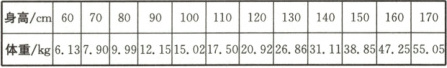 检验模型作出上述函数的图象(图略)之后,可以发现,这个函数模型与已知数据的拟合程度较好,这说明它能较好地反映这个地区未成年男性体重与身高的关系.
