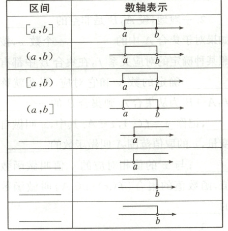 ;(3)满足不等式 $ a \leq x < b $ 或 $ a < x \leq b $ 的实数 $ x $ 的集合叫做半开半闭区间,分别表示为