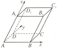 (2) 在平行六面体$ ABCD - A_1B_1C_1D_1 $中,$ AB = AD = 2 $,$ AA_1 = 3 $,$ \angle BAD = \angle BAA_1 = \angle DAA_1 = 60° $,建立“空间斜$ 60° $坐标系”如图所示。