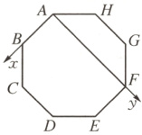 则$x_{A} = 0$,$x_{B} = 1$,$x_{C} = \frac{3}{2}$,$x_{D} = 1$,$x_{E} = 0$,$x_{F} = -\frac{1}{2}$,所以$x = 0$或$\pm \frac{1}{2}$或$\pm 1$或$\pm \frac{3}{2}$或$\pm 2$,即$A_{6} = \{0, \pm \frac{1}{2}, \pm 1, \pm \frac{3}{2}, \pm 2\}$,共有$9$个元素。当$n = 8$时,该几何体为正八棱柱,作出其底面$ABCDEFGH$的示意图,如图: