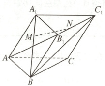 10. BD 因为$BM = 2A_1M$,$C_1N = 2B_1N$,所以$\overrightarrow{A_1M} = \frac{1}{3}\overrightarrow{A_1B_1} = \frac{1}{3}(\overrightarrow{AB} - \overrightarrow{AA_1})$,$\overrightarrow{A_1N} = \overrightarrow{A_1B_1} + \overrightarrow{B_1N} = \overrightarrow{AB} + \frac{1}{3}\overrightarrow{B_1C_1} = \overrightarrow{AB} + \frac{1}{3}(\overrightarrow{AC} - \overrightarrow{AB}) = \frac{2}{3}\overrightarrow{AB} + \frac{1}{3}\overrightarrow{AC}$,所以$\overrightarrow{MN} = \overrightarrow{A_1N} - \overrightarrow{A_1M} = \frac{2}{3}\overrightarrow{AB} + \frac{1}{3}\overrightarrow{AC} - \frac{1}{3}(\overrightarrow{AB} - \overrightarrow{AA_1}) = \frac{1}{3}\overrightarrow{a} + \frac{1}{3}\overrightarrow{b} + \frac{1}{3}\overrightarrow{c}$,故A错误。因为$|\boldsymbol{a}| = |\boldsymbol{b}| = |\boldsymbol{c}| = 1$,$\boldsymbol{a} · \boldsymbol{b} = 0$,$\boldsymbol{a} · \boldsymbol{c} = \boldsymbol{b} · \boldsymbol{c} = \frac{1}{2}$,所以$|\overrightarrow{MN}|^2 = \frac{1}{9}(\boldsymbol{a} + \boldsymbol{b} + \boldsymbol{c})^2 = \frac{1}{9}(\boldsymbol{a}^2 + \boldsymbol{b}^2 + \boldsymbol{c}^2 + 2\boldsymbol{a} · \boldsymbol{b} + 2\boldsymbol{a} · \boldsymbol{c} + 2\boldsymbol{b} · \boldsymbol{c}) = \frac{1}{9}(3 + 2) = \frac{5}{9}$,所以$|\overrightarrow{MN}| = \frac{\sqrt{5}}{3}$,故B正确。因为$\overrightarrow{A_1B} = \overrightarrow{AB} - \overrightarrow{AA_1} = \boldsymbol{a} - \boldsymbol{c}$,$\overrightarrow{BC_1} = \overrightarrow{BC} + \overrightarrow{BB_1} = \overrightarrow{AC} - \overrightarrow{AB} + \overrightarrow{AA_1} = \boldsymbol{b} + \boldsymbol{c} - \boldsymbol{a}$,所以$\overrightarrow{A_1B} · \overrightarrow{BC_1} = (\boldsymbol{a} + \boldsymbol{c}) · (\boldsymbol{b} + \boldsymbol{c} - \boldsymbol{a}) = \boldsymbol{a} · \boldsymbol{b} + \boldsymbol{b} · \boldsymbol{c} - \boldsymbol{a}^2 + \boldsymbol{c}^2 = \frac{1}{2}$。因为$\overrightarrow{A_1B}^2 = (\boldsymbol{a} + \boldsymbol{c})^2 = \boldsymbol{a}^2 + \boldsymbol{c}^2 + 2\boldsymbol{a} · \boldsymbol{c} = 3$,所以$|\overrightarrow{A_1B}| = \sqrt{3}$。又$\overrightarrow{BC_1}^2 = (-\boldsymbol{a} + \boldsymbol{b} + \boldsymbol{c})^2 = \boldsymbol{a}^2 + \boldsymbol{b}^2 + \boldsymbol{c}^2 - 2\boldsymbol{a} · \boldsymbol{b} - 2\boldsymbol{a} · \boldsymbol{c} + 2\boldsymbol{b} · \boldsymbol{c} = 3$,所以$|\overrightarrow{BC_1}| = \sqrt{3}$,所以$\cos \langle\overrightarrow{A_1B},\overrightarrow{BC_1}\rangle = \frac{\overrightarrow{A_1B} · \overrightarrow{BC_1}}{|\overrightarrow{A_1B}||\overrightarrow{BC_1}|} = \frac{\frac{1}{2}}{\sqrt{3} × \sqrt{3}} = \frac{1}{6}$,故D正确。