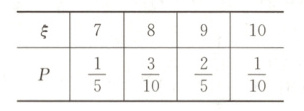所以$P(\xi\geq8)=P(\xi=8)+P(\xi=9)+P(\xi=10)=\frac{3}{10}+\frac{2}{5}+\frac{1}{10}=\frac{4}{5}$.