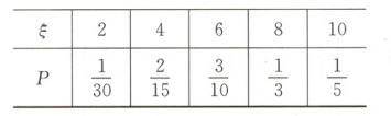 所以数学期望$E(\xi)=2 × \frac{1}{30}+4 × \frac{2}{15}+6 × \frac{3}{10}+8 × \frac{1}{3}+10 × \frac{1}{5}=\frac{106}{15}$.