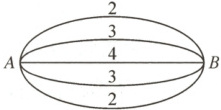 12. (2023 河北邯郸第一中学月考)如图所示,$A$,$B$两点由5条连线并联,它们在单位时间内能通过的最大信息量依次为2,3,4,3,2.记从中任取3条线且在单位时间内都通过的最大信息总量为$\xi$,则$P(\xi\geq8)=$