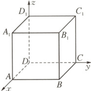 4.BCD根据题意可知点C₁的坐标为(0,2,2),故A错误;由空间直角坐标系可知A(2,0,0),$\overrightarrow{CA}$=(2,-2,-2),故B正确;由空间直角坐标系可知B(2,2,0),D₁(0,0,2),故BD₁的中点坐标为(1,1,1),故C正确;点B₁的坐标为(2,2,2),关于y轴的对称点为(-2,2,-2),故D正确.