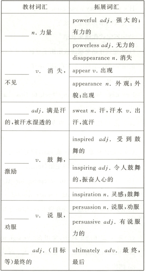 Ⅱ.interpret; power; disappear; sweaty; inspire; persuade; ultimate