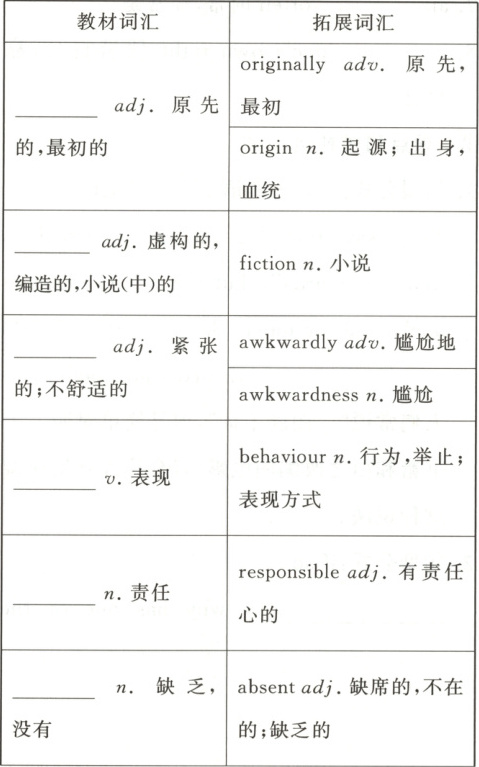 Ⅱ.brief;disappointed;original;fictional; awkward;behave;responsibility;absence; normal