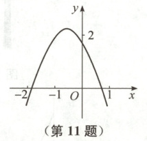 11. ①②③ 设$f(x)=ax^{2}+bx + c(a \neq 0)$,则$f( - 1)=a - b + c = 2$,所以$c = 2 + b - a$。由图可知$f( - 2)=4a - 2b + c < 0$,①正确;由图可知$a < 0$,对称轴为直线$x = - \frac{b}{2a}$,$- 1 < - \frac{b}{2a} < 0$,所以$2a - b < 0$,②正确;由图可知$f(1)=a + b + c < 0$,联立$\begin{cases}4a - 2b + c < 0\\a + b + c < 0\end{cases}$,将$c = 2 + b - a$代入上述不等式组得$\begin{cases}3a - b + 2 < 0\\b + 1 < 0\end{cases}$,两式相加得$3a + 3 < 0$,解得$a < - 1$,③正确;由图可知$f(-\frac{b}{2a})=\frac{4ac - b^{2}}{4a} > 2$,所以$b^{2} + 8a > 4ac$,④错误。