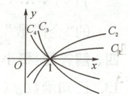 2. C 取$y = 1$知$a = x$,直线$y = 1$与四条曲线交点的横坐标满足$x_1 > x_2 > x_3 > x_4$,得$a_1 > a_2 > a_3 > a_4$.故选项C符合.