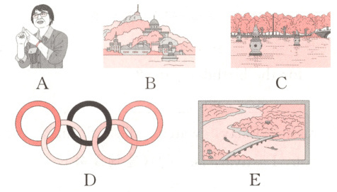 1. 句意为“——你对奥运会了解多少?——有夏季奥运会和冬季奥运会”,D图是奥运五环,与对话内容相符,故选D。