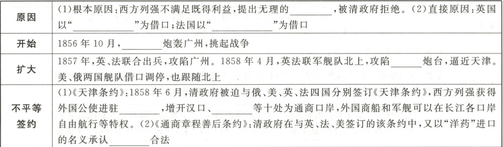 修约主张 亚罗号事件 马神甫事件 英军 大沽 北京 南京 鸦片贸易
