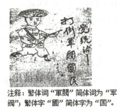 注释:繁体字“軍閥”简体词为“军阀”;繁体字“圍”简体字为“围”。