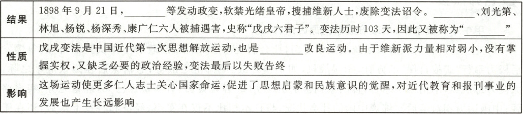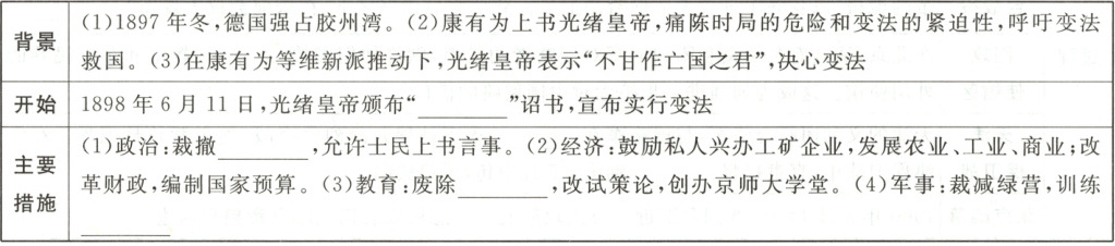 明定国是 冗官冗员 八股文 新式军队 慈禧太后 谭嗣同 百日维新 资产阶级