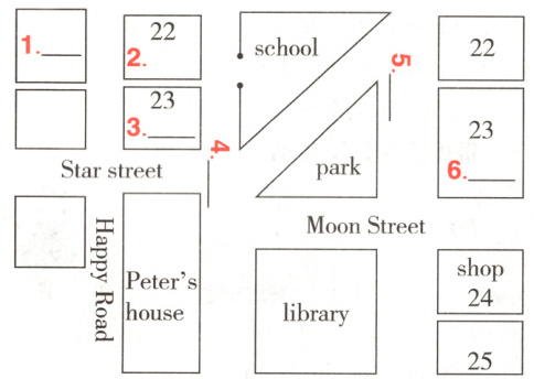 一、根据同学们住址的描述,补全地图。