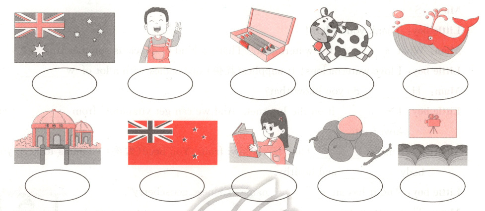 二、根据图意,找出正确的单词或短语,将其字母编号写在圆圈内。